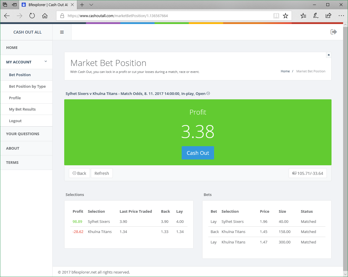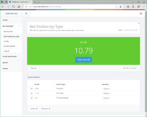 Using the App you can select the specific markets that you’d like to Cash Out on or alternatively Cash Out on all markets using a single Cash Out All button.